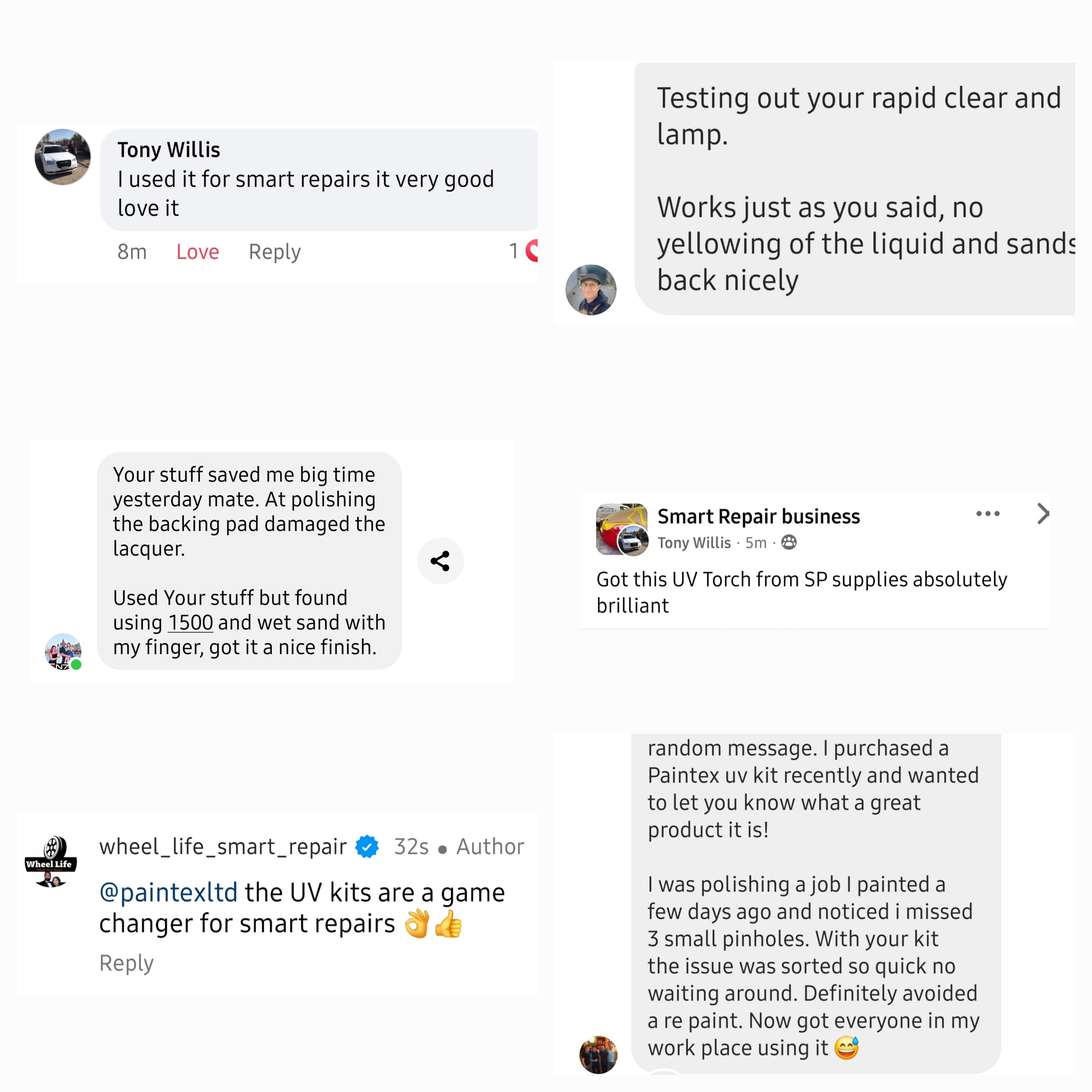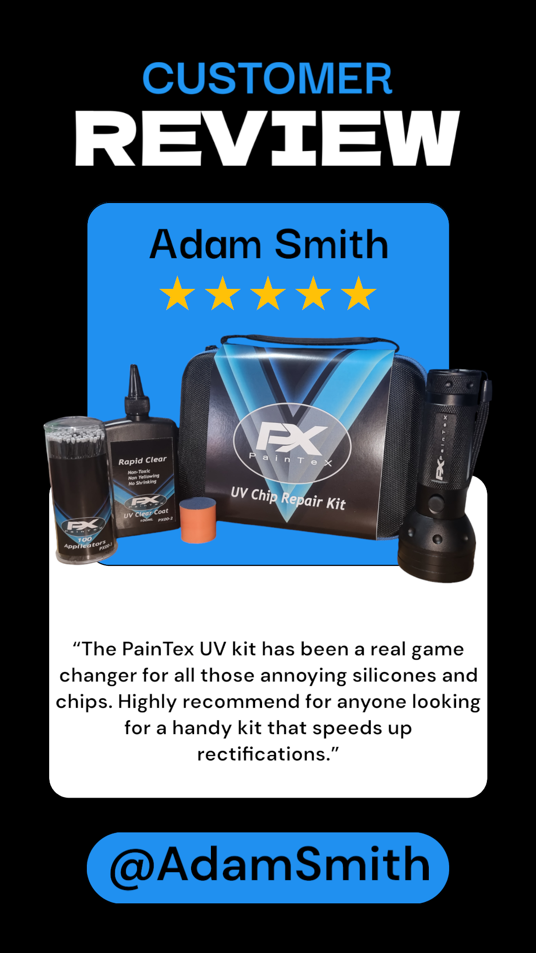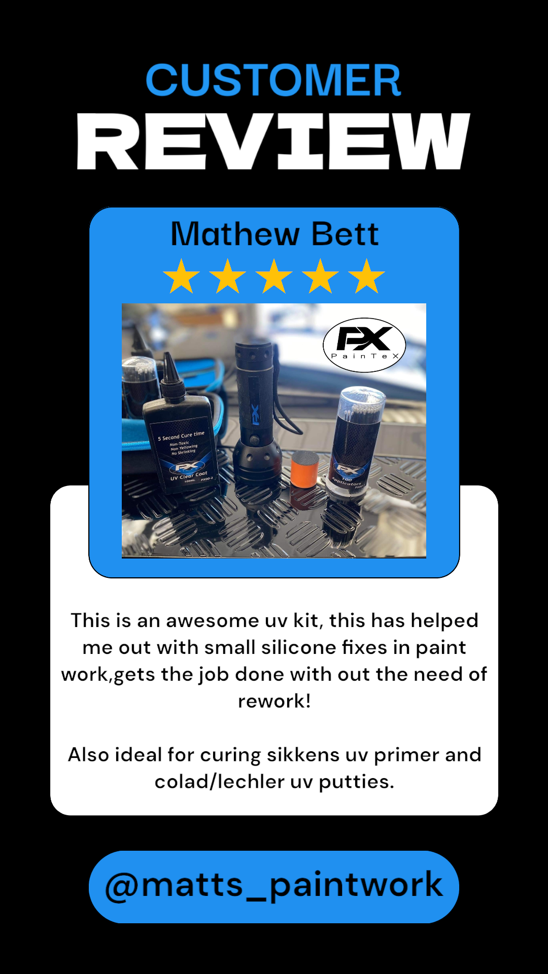 Why UK Bodyshop's Are Switching To PainTeX UV Curing Technology? Take UV Primer for example, it cures faster than a conventional high-build primer - 3 mins Vs 20+ mins. It requires less products to purchase (i.e hardener & thinners) and it requires no gas to cure. Thus saving you time and money over the conventional method of priming, and there for increasing your profit margin. So why not give it a try? At PainTeX we stand by our products and if you are not completely happy, send it back to us within 14 days for a full refund. Engineered for Profit. Backed by Guarantee